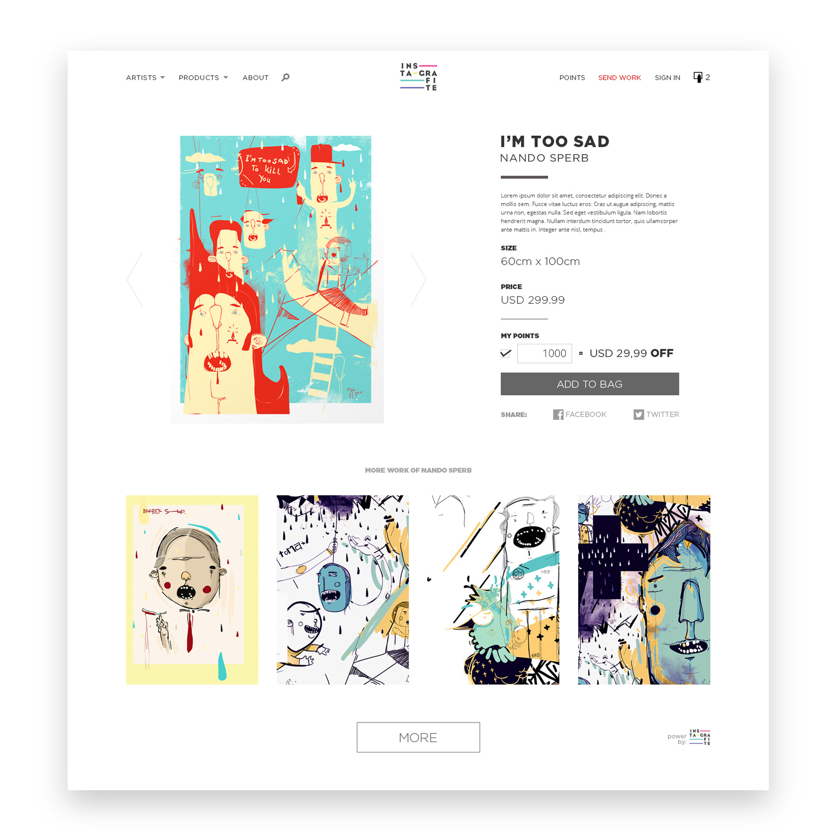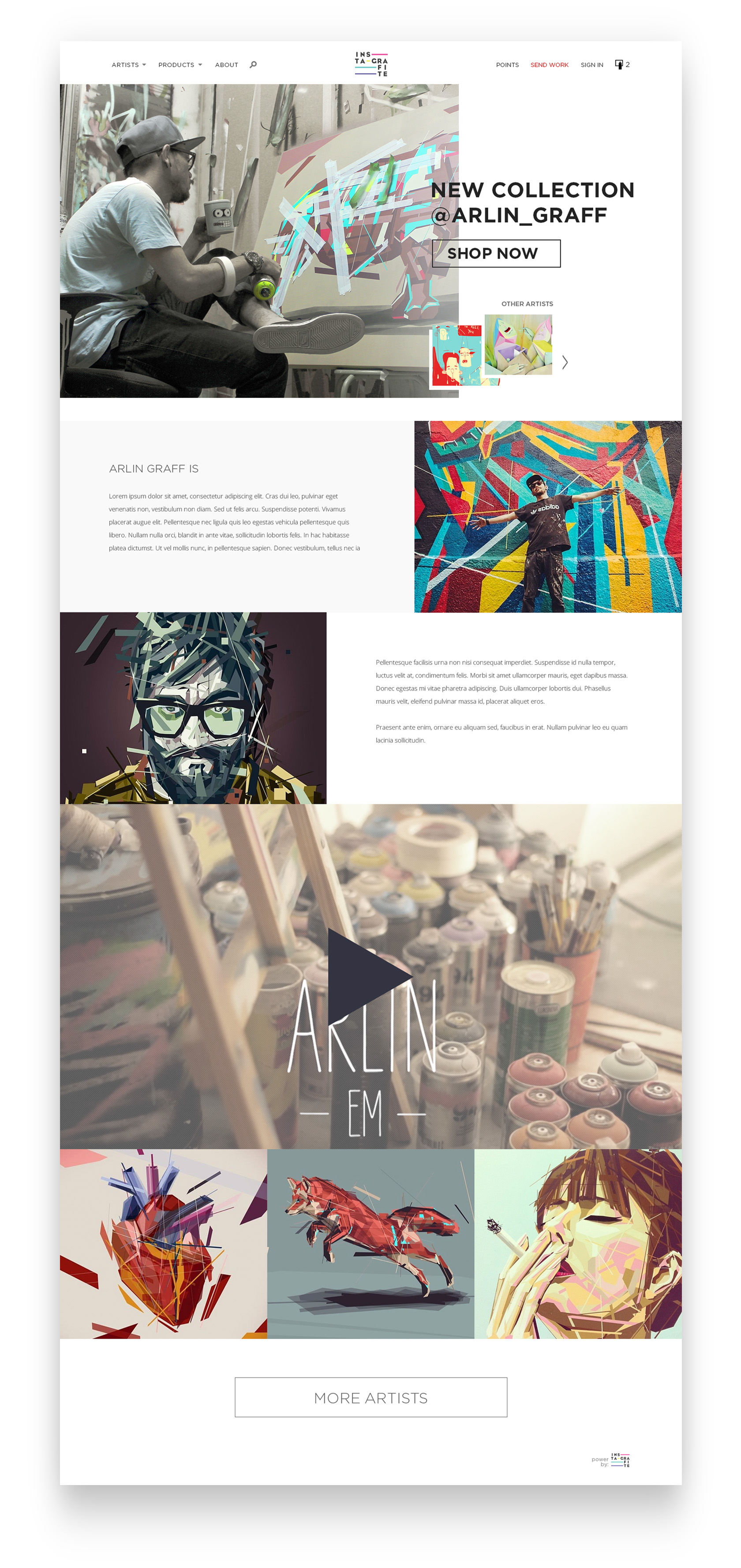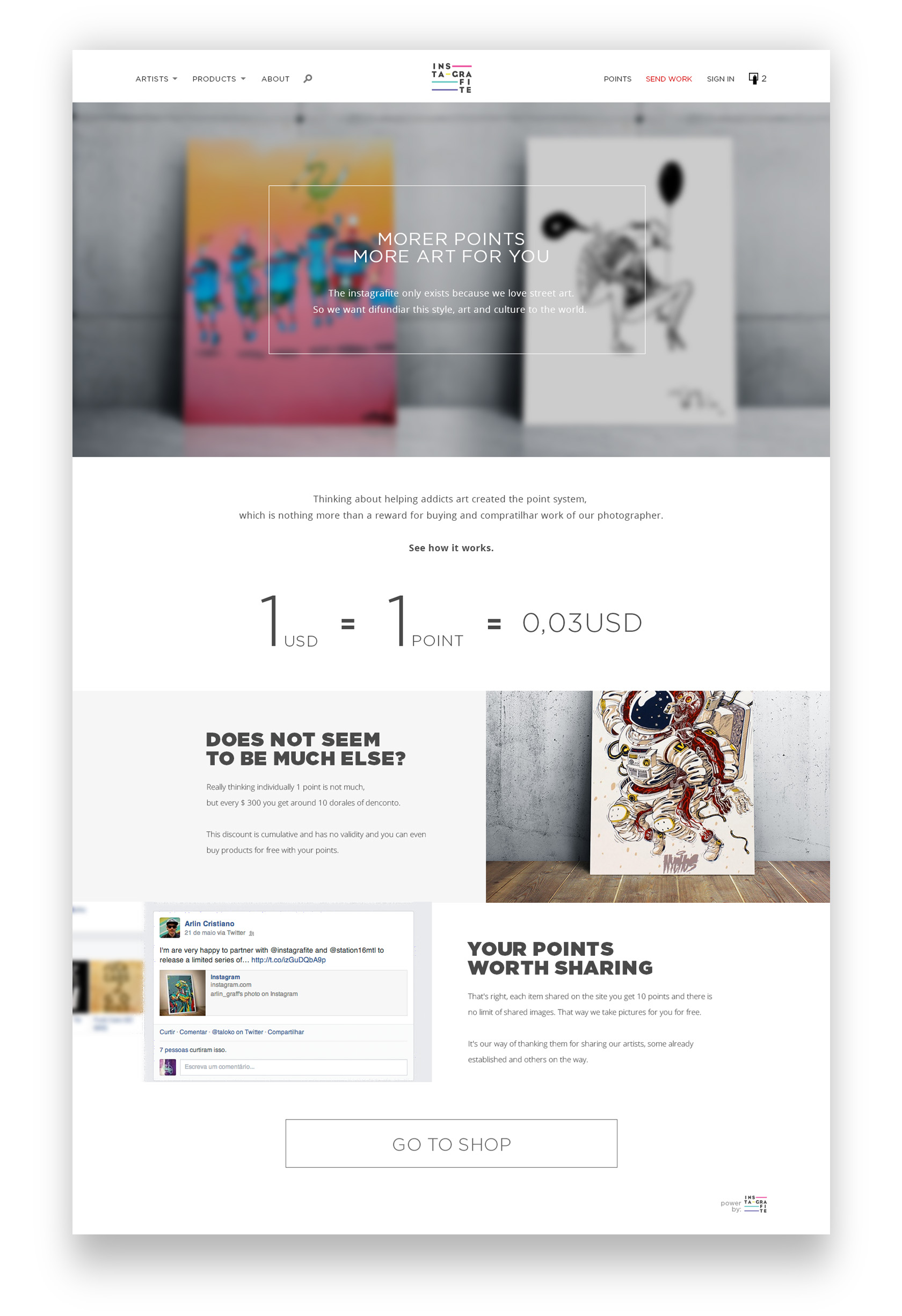 Em 2016 fui convidado a criar o seu primeiro e-commerce. Um dos pontos mais importantes para esse projeto era valorizar as obras e a página pessoal de cada artista em todos os aspectos, além de manter a mesma experiência em dispositivos móveis.